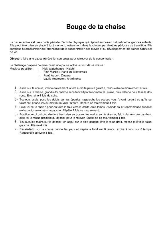Voici une activité du programme de pauses actives Bouge ta chaise®.