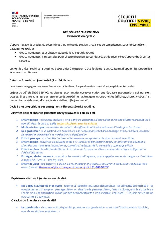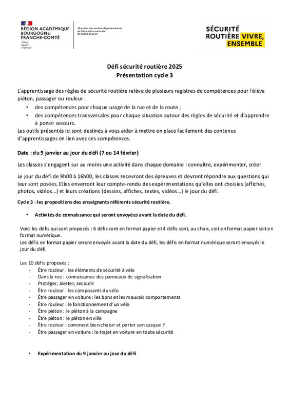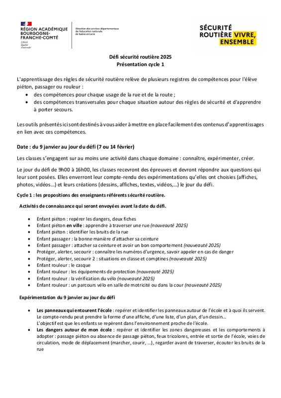Préparé par l'équipe des enseignants référents sécurité routière