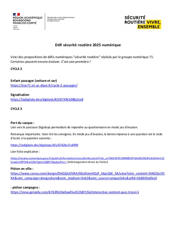 Préparé par l'équipe des enseignants référents sécurité routière