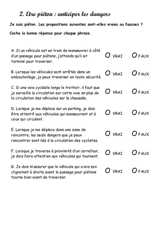 L'attestation de première éducation à la route (APER) décline trois axes d'apprentissage : enfant piéton, enfant passager et enfant pilote. Pratiquer des activités pour chaque rubrique permet de valider l'APER.